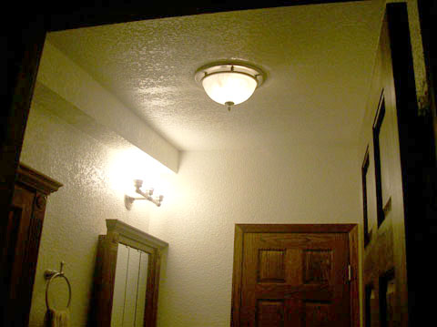 New sheetrock and knock down texture new cabinets and travel fixture.